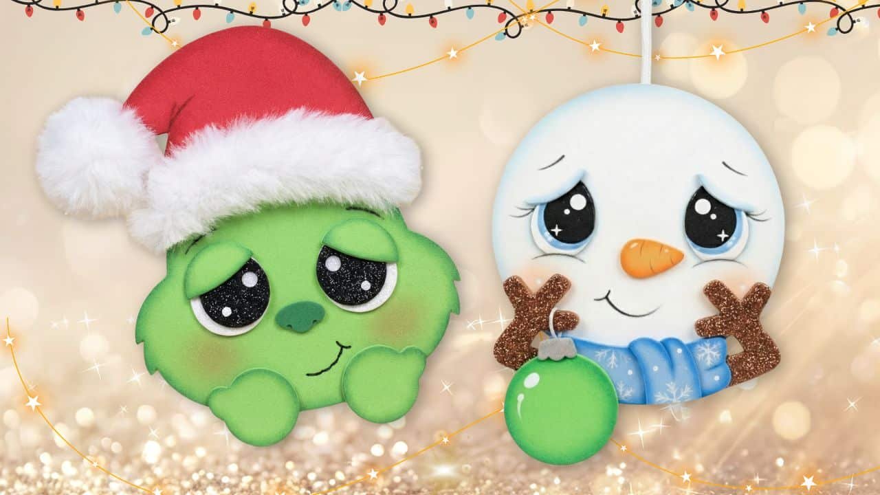 Duo de Tiernas Esferitas Navideñas – Duende verde y Snowman